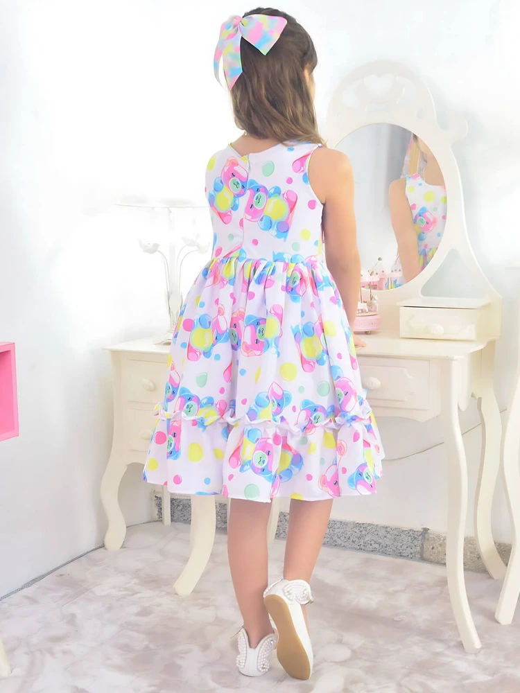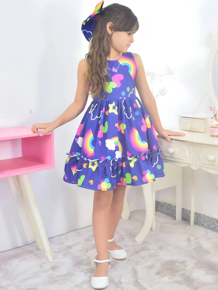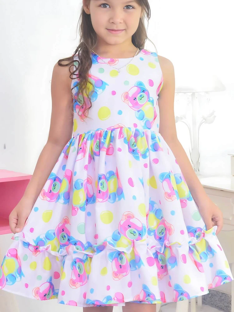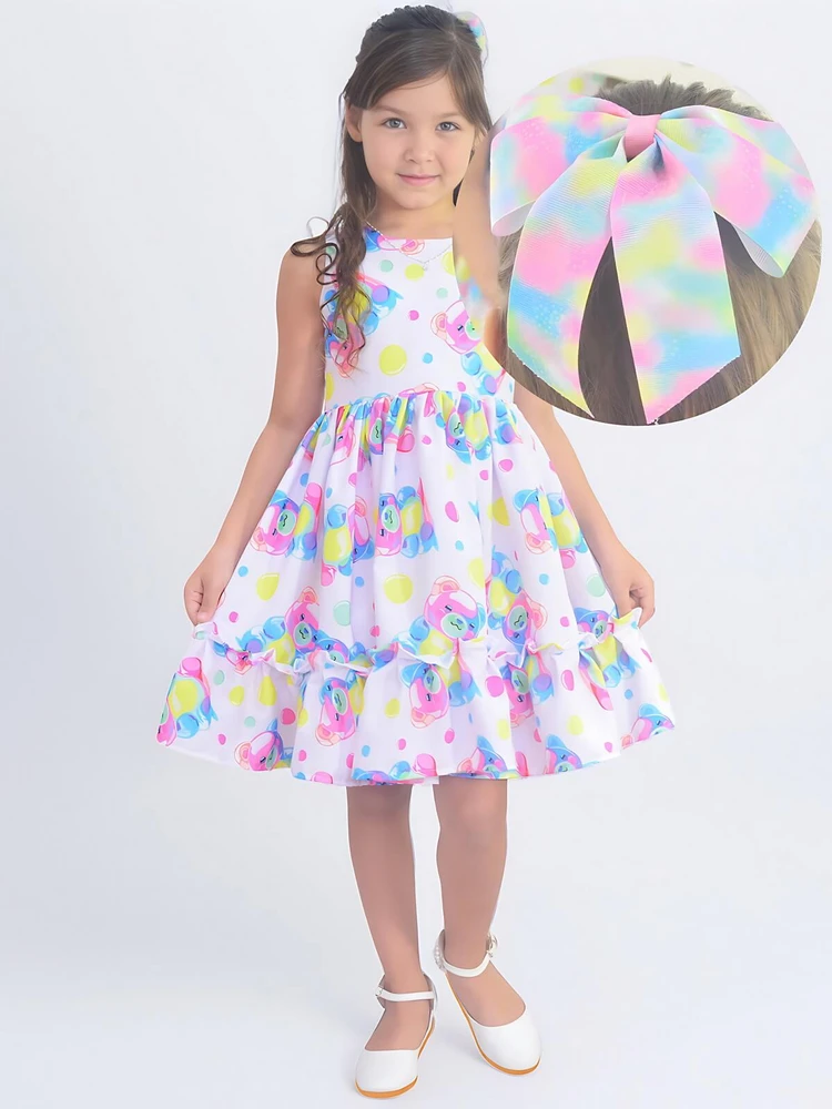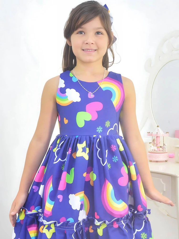 Transforme passeios, festas e comemorações em momentos ainda mais alegres com essas encantadoras estampas. O modelo combina o charme dos babados rodados com uma estampa divertida e vibrantes, criando um visual único e cheio de personalidade para meninas que adoram se destacar.