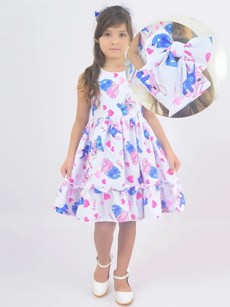 Vestido de Meninas Mini Fashionista Luxo + Laço de Cabelo - Vários Temas