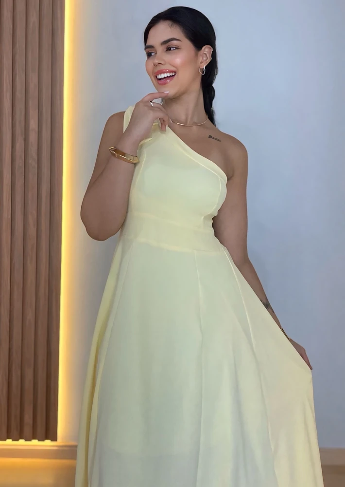 Invista em um vestido que vai te deixar ainda mais linda e confiante. Compre agora o Vestido Elisa Longo Assimétrico de Um Ombro Só e arrase em todas as ocasiões!