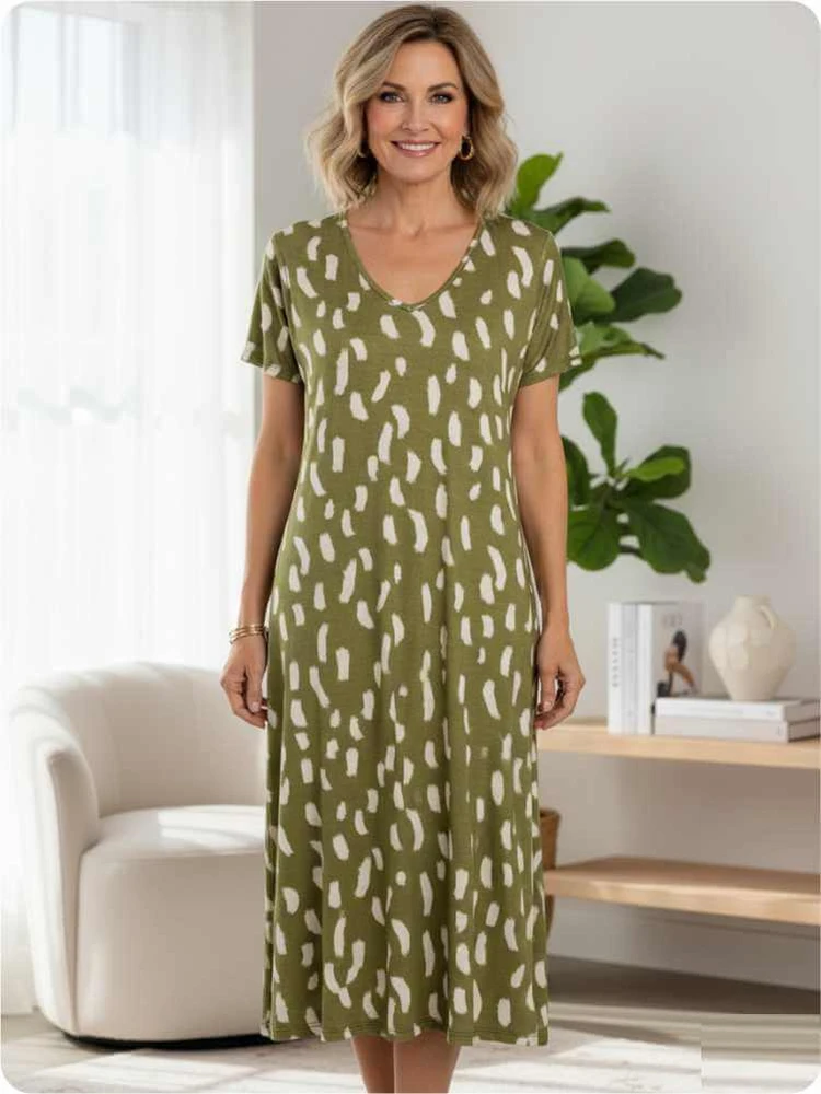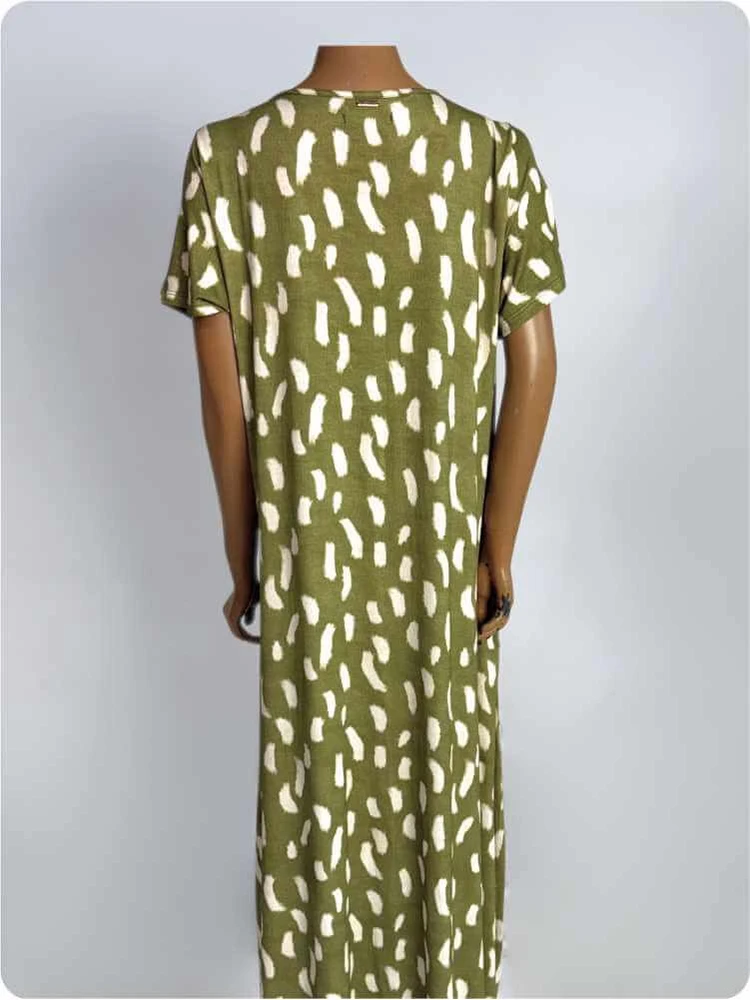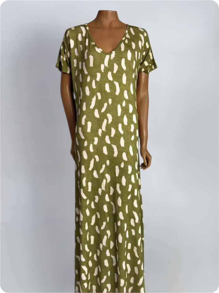 O Vestido Feminino Midi Verde Oliva Estampado em Malha é a escolha perfeita para mulheres que buscam conforto e estilo em um só look. Confeccionado em malha macia, proporciona toque suave e caimento fluido, ideal para o dia a dia ou eventos casuais. A estampa moderna em tom off-white sobre o verde oliva cria uma combinação elegante e versátil, que valoriza todos os tons de pele.