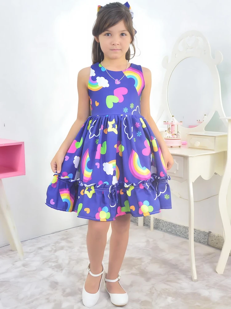 Encanto e Alegria com o Vestido Arco-Íris e Nuvens