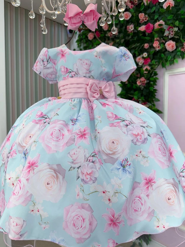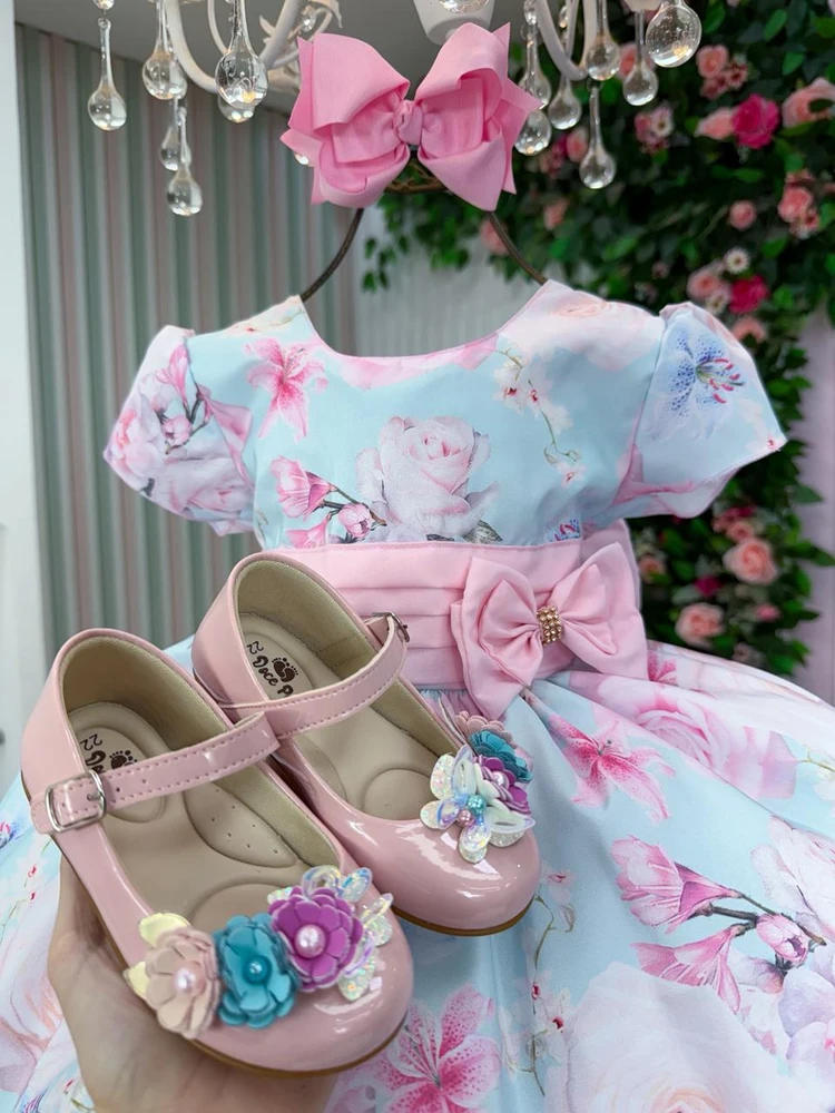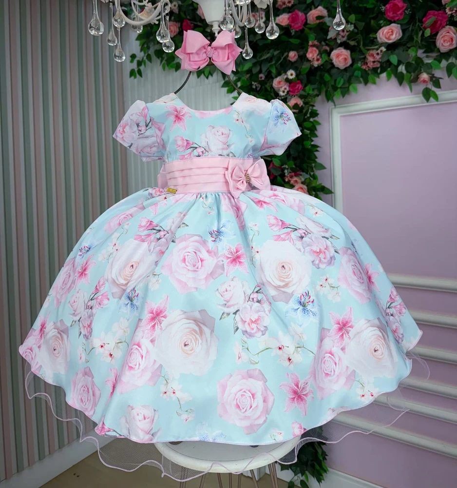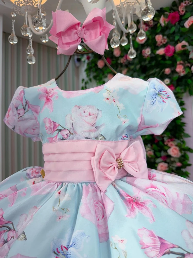 Vestido Kids Jardim Florido Azul Bebê: delicadeza e charme para ocasiões especiais. Com estampa floral em tons suaves de rosa e azul, esse vestido encanta pelo design sofisticado e detalhes exclusivos, como o laço rosa na cintura que adiciona um toque de elegância. Confeccionado em tecido de alta qualidade, proporciona conforto e liberdade de movimento para as pequenas, ideal para festas, aniversários e eventos sociais. O acabamento caprichado e a combinação perfeita de cores tornam este vestido um item indispensável no guarda-roupa infantil, trazendo praticidade e estilo.