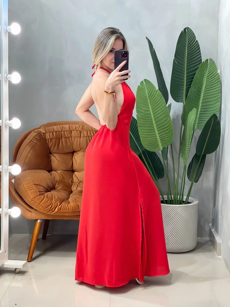 Vestido Longo em Duna Frente Única e Costas Nua Kelly Ref. 1852