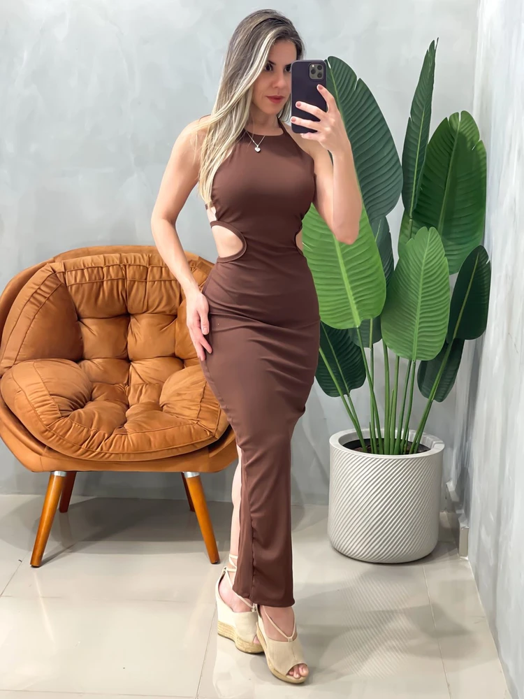 Vestido Longo em Ribana de Alça com Recortes Laterais Geovana Ref. 1763