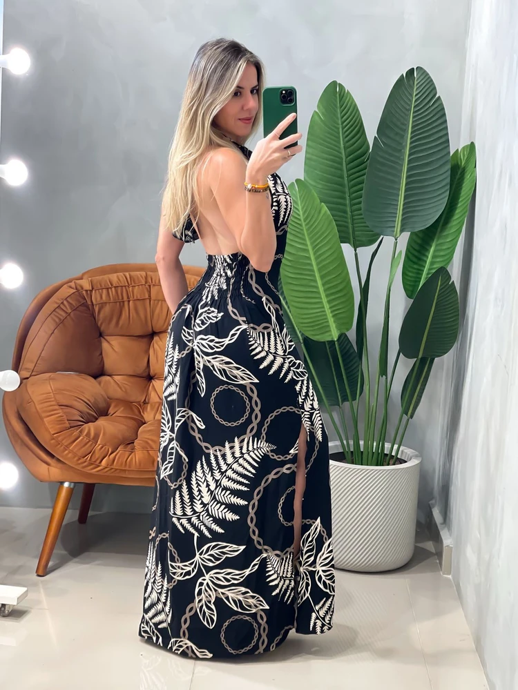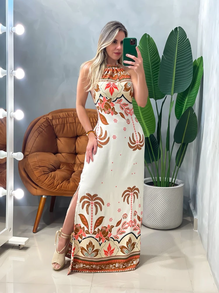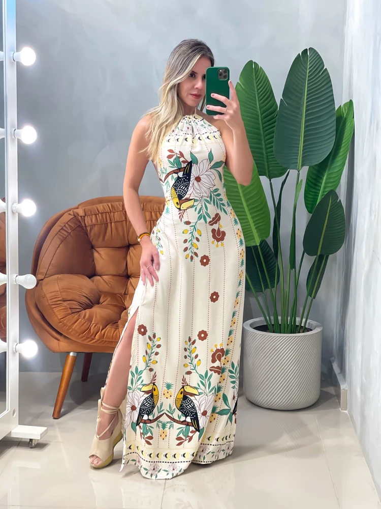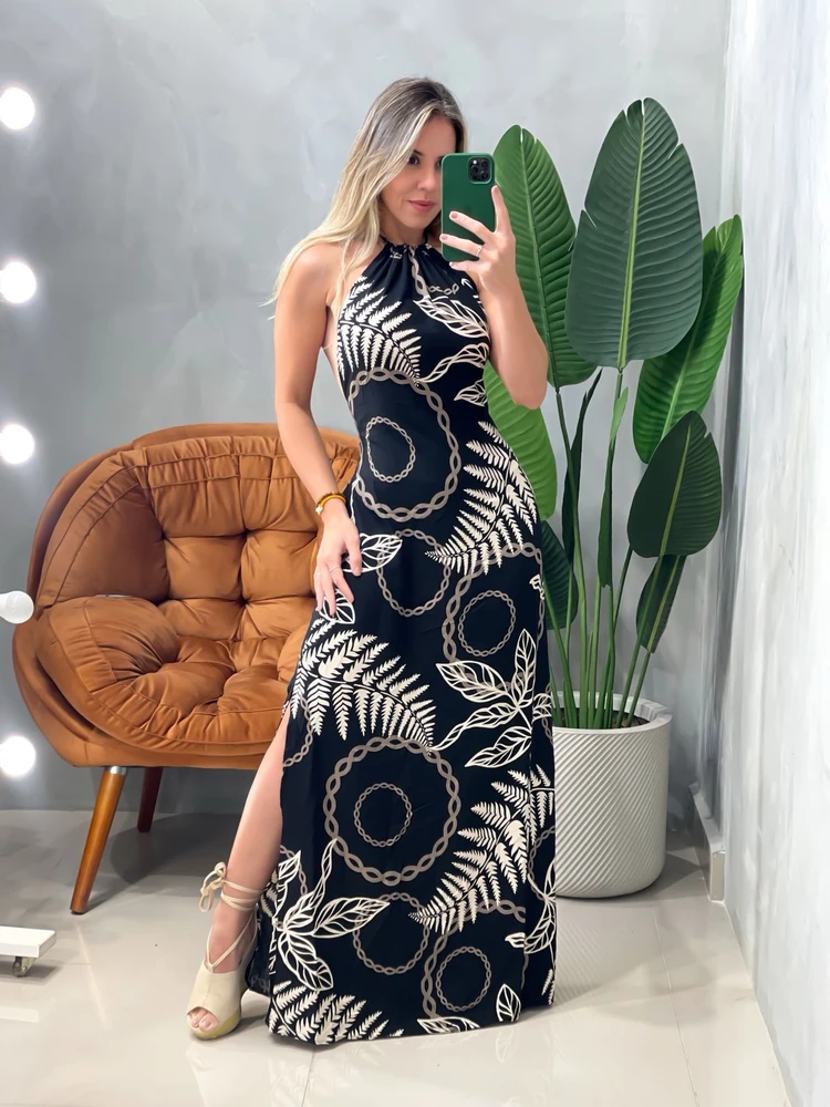 Vestido Longo em Viscose Frente Única Estampado Angélica Ref. 1877