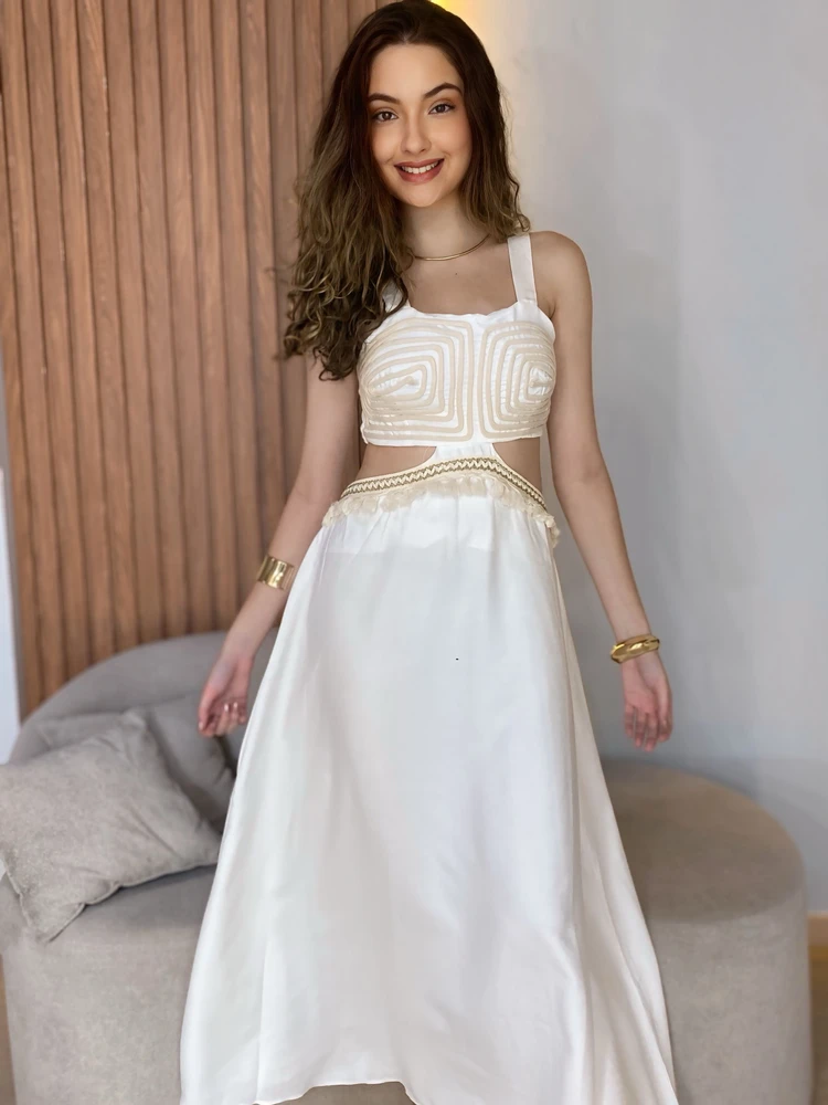 O Vestido Longo Trançado Off White é a peça perfeita para quem ama um visual elegante, leve e com aquele toque artesanal que está super em alta.