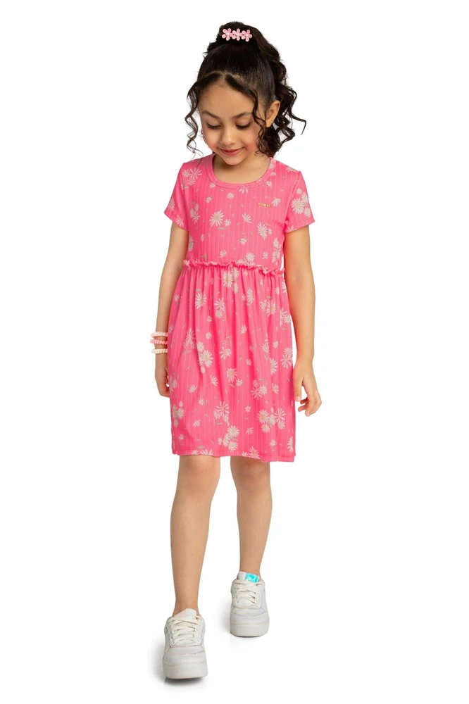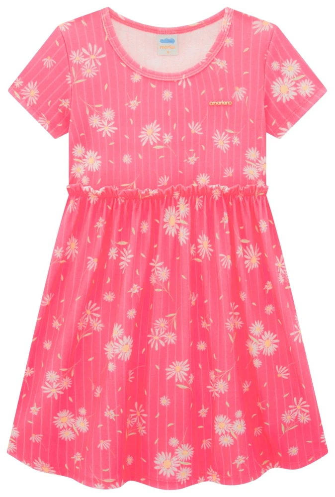 Com mangas curtas e gola redonda, o Vestido Margaridas é perfeito para ser usado em dias mais quentes, proporcionando liberdade de movimento e frescor para sua filha.