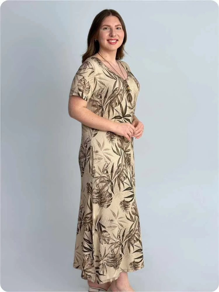 Com uma estampa sofisticada em tons de bege e manguinhas delicadas, ele é perfeito para criar looks que transitam do casual chic ao mais arrumado. Sua versatilidade permite combinações com tênis para um visual moderno e descontraído, ou com sandálias e acessórios para um toque refinado. Uma peça indispensável que une praticidade, estilo e o charme atemporal da Mariantonia, fazendo com que você se sinta linda e confortável em todos os momentos.