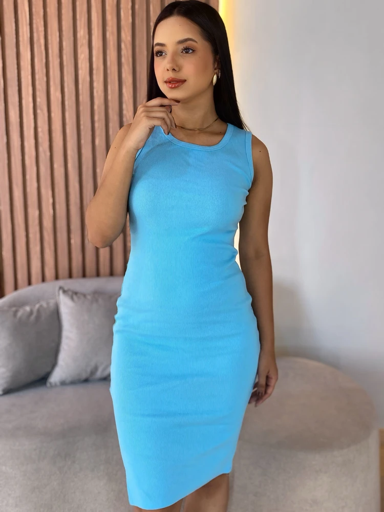 Vestido Midi Canelado Gola Redonda