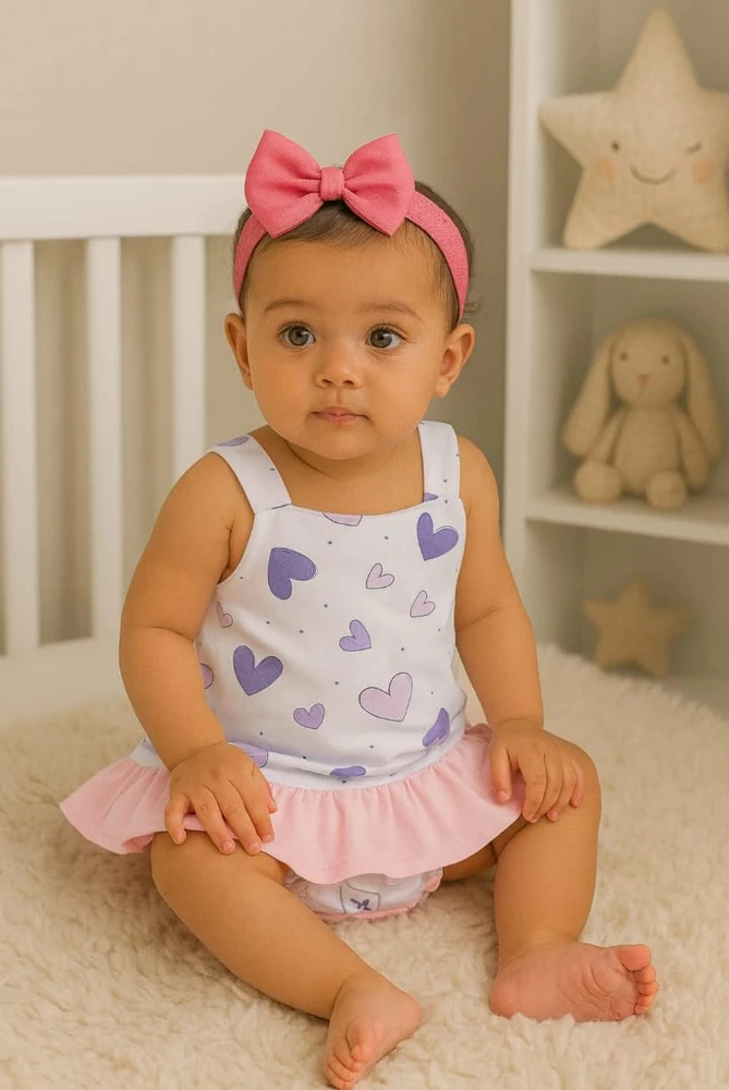 Este vestido regata com saia tutu é perfeito para deixar sua bebê ainda mais charmosa e confortável nos momentos de lazer e passeios. Confeccionado em tecido suave e leve, o modelo oferece liberdade de movimento ideal para os primeiros passos e descobertas. O design com estampa delicada de corações lilás e saia tutu rosa traz um toque de doçura e feminilidade, garantindo um visual adorável para ocasiões especiais ou dia a dia.