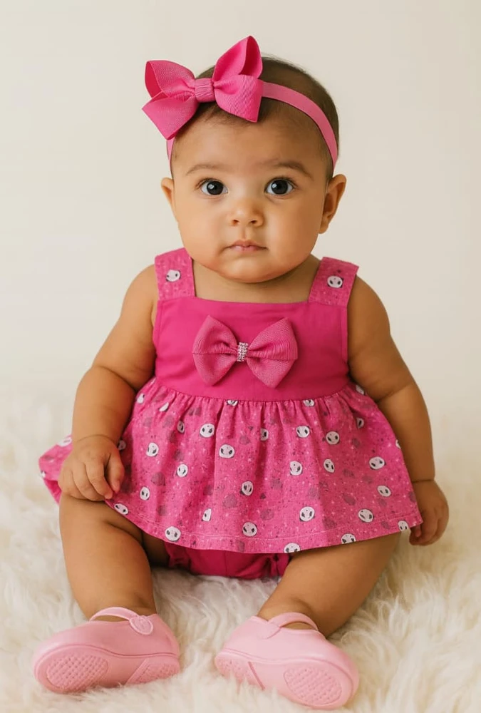 Vestido rosa estampado panda com acessório de tiara: conforto e charme para os primeiros momentos da sua bebê. Feito com tecido macio e respirável, este vestido oferece liberdade de movimento e delicadeza, ideal para o dia a dia ou ocasiões especiais. O design com estampa de pandas adiciona um toque divertido e único, enquanto o laço frontal e a tiara com laço complementam o visual com elegância. Perfeito para destacar a fofura natural das pequenas, este conjunto é indispensável no guarda-roupa infantil, combinando estilo, praticidade e qualidade que mães aprovam. Garanta já o look que une conforto e personalidade para sua bebê!