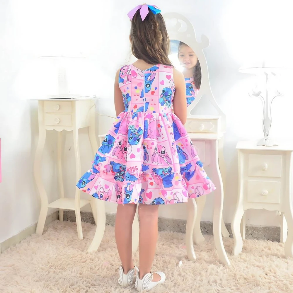 Vestido Stitch e Angel Mini Fashionista Laço Opcional