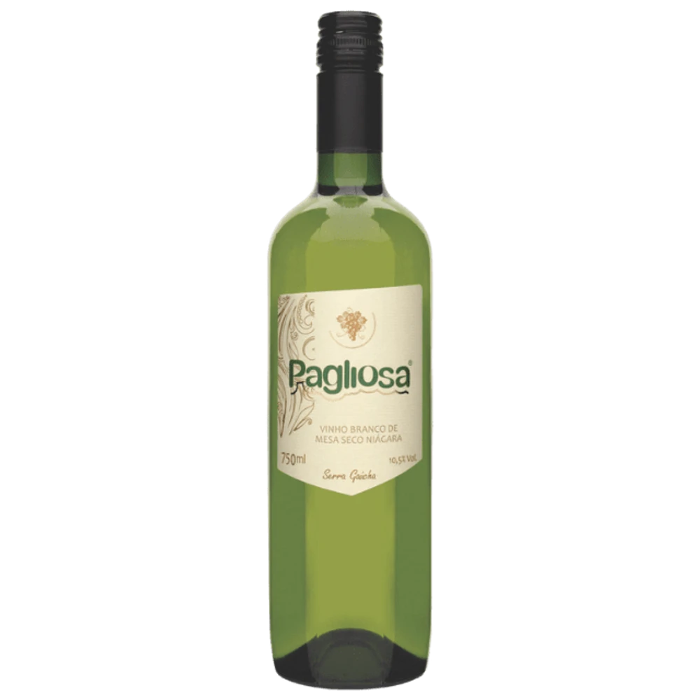 Vinho Branco Seco Niágara O Vinho Branco de Mesa Seco Niágara da Vinícola Pagliosa é uma escolha leve e refrescante para o dia a dia. De cor amarelo-claro brilhante, revela aromas típicos da uva Niágara: notas intensas de uvas frescas, toques florais e uma leve lembrança cítrica. Em boca, é seco, com acidez equilibrada e final limpo, tornando-se um vinho fácil de beber e muito agradável.Teor alcoólico: 10,5%