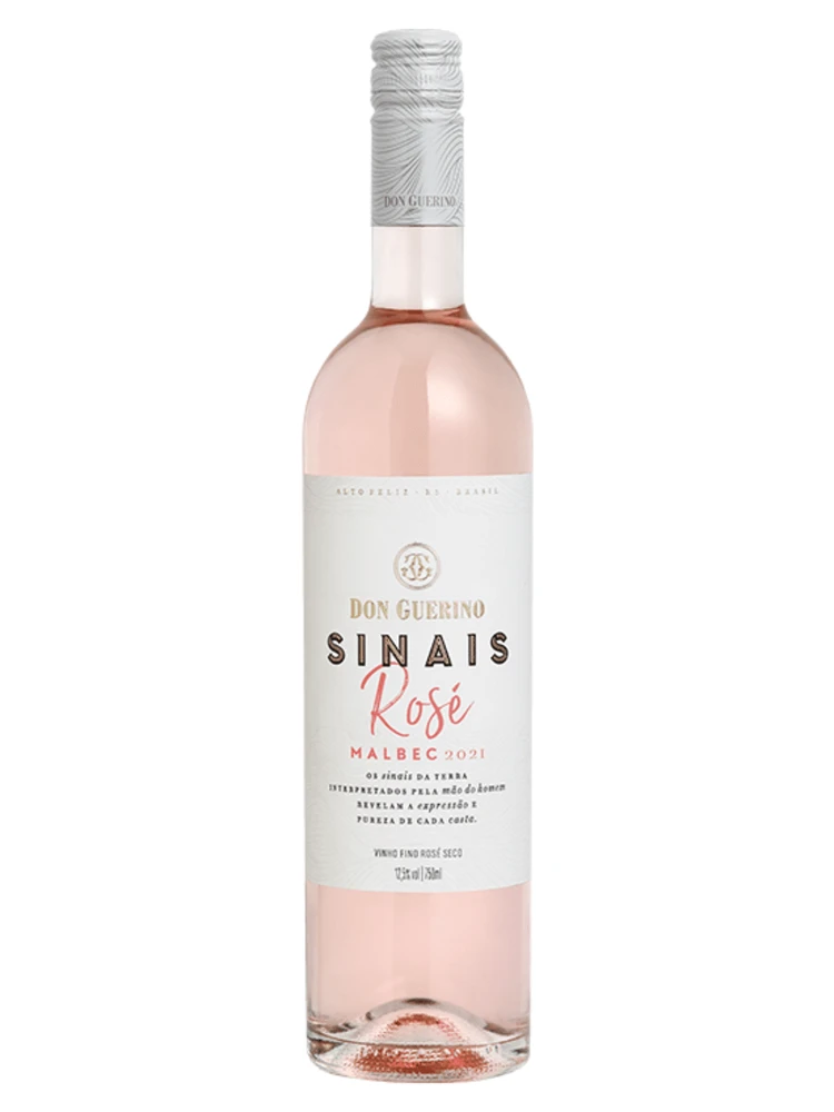 O vinho Don Guerino Sinais Rosé Malbec, é produzido pela Vinícola Don Guerino. Uma vinícola familiar, que está localizada na cidade de Alto Feliz - RS, no paralelo 29° Sul, com terroir caracterizado por uma constante exposição solar e ventilação. Elaborado a partir da uva 100% Malbec, de vinhedos próprios localizados na Serra Gaúcha - RS. Este vinho, é um dos raros malbecs rosés do Brasil. De coloração rosé salmão clara, com notas típicas de cereja, morango e flores brancas. Equilibrado, agradável, refrescante e com intenso final de boca.