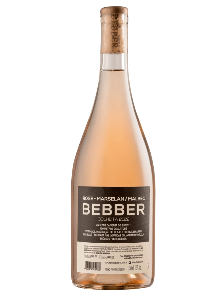 Produzido pela Vinícola Família Bebber, na região da Serra Gaúcha, esse vinho brasileiro é elaborado a partir das variedades de uvas Marselan e Malbec. Límpido e brilhante, coloração rosa tênue, com aromas florais e toques frutado, apresenta bom volume de boca com final leve e refrescante. Com uma garrafa elegante e sofisticada, é uma excelente opção para presentear amigos e familiares em ocasiões especiais.