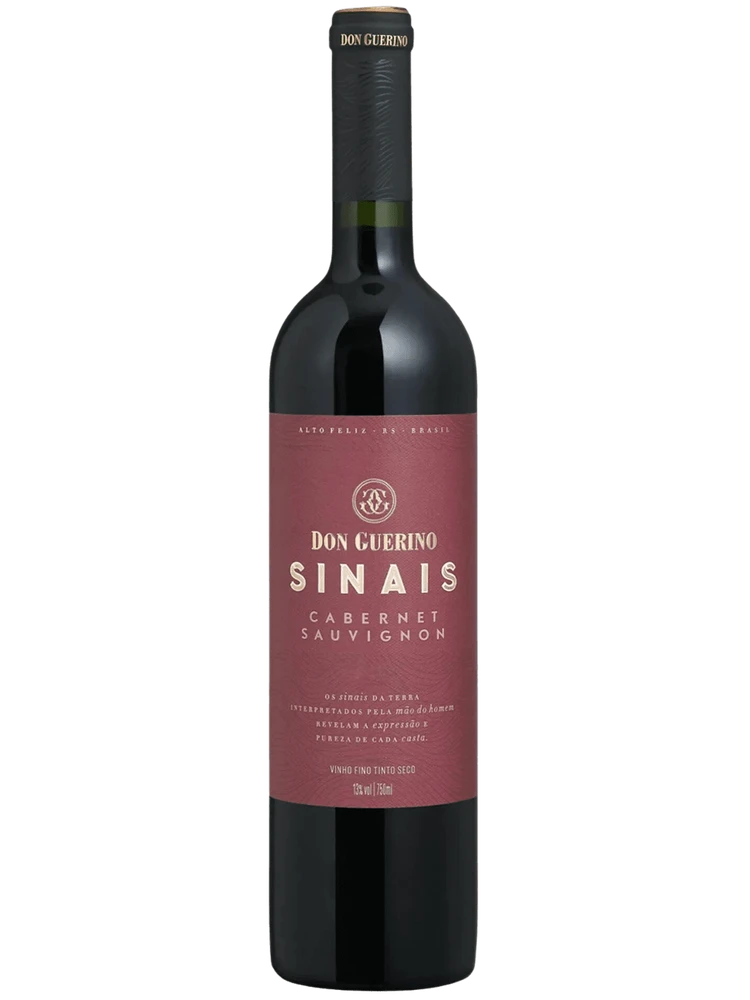 O vinho tinto Don Guerino Sinais Cabernet Sauvignon, é produzido pela Vinícola Don Guerino. Uma vinícola familiar, que está localizada na cidade de Alto Feliz - RS, no paralelo 29° Sul, com terroir caracterizado por uma constante exposição solar e ventilação. Elaborado a partir da uva 100% Cabernet Sauvignon, de vinhedos próprios localizados na Serra Gaúcha - RS. Este vinho, possui elaboração clássica sem passagem por carvalho. Vinho jovem, de cor vermelho profundo, com aromas a frutas vermelhas, passas e pimenta negra. Com taninos amáveis, com bom corpo e persistência.