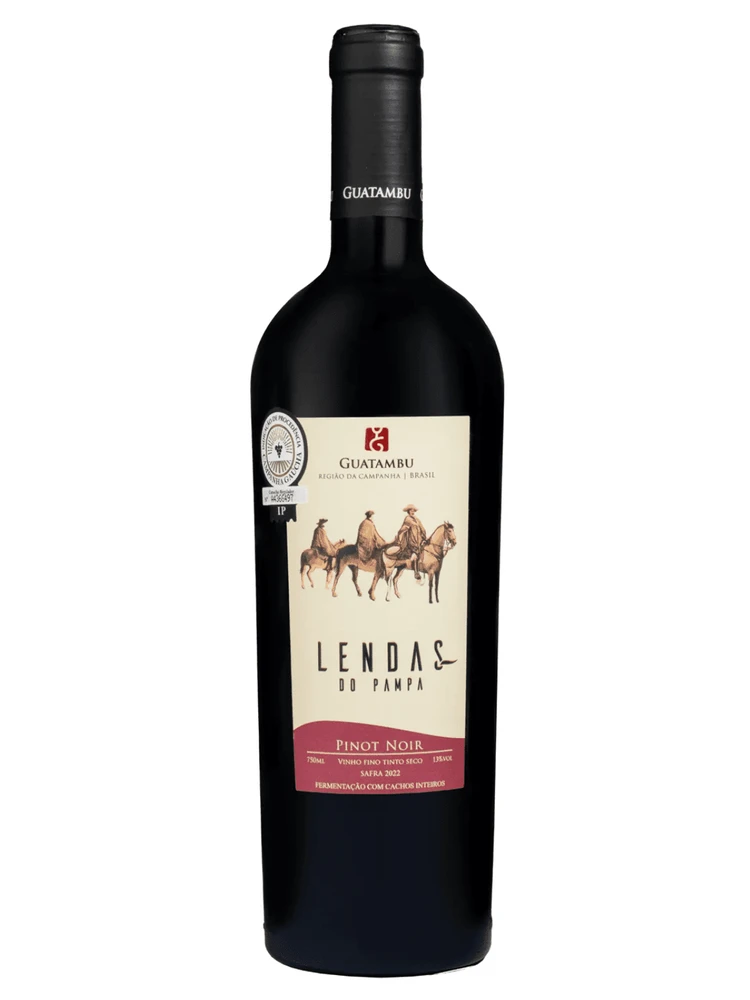 O vinho Guatambu Lendas do Pampa Pinot Noir, é produzido pela Guatambu Estância do Vinho, uma vinícola localizada na Campanha Gaúcha, em Dom Pedrito - RS. Uma vinícola familiar que produz suas próprias uvas e vinhos finos, buscando sempre a excelência, resultando em vinhos únicos e premiados.Elaborado com uvas 100% Pinot Noir de vinhedos próprios com 17 anos de idade da Campanha Gaúcha - RS. Estagiou em barrica de carvalho por 8 meses. Exibe cor rubi de média intensidade, aromas no primeiro plano de especiarias, como cravo e baunilha e, logo após, aromas intensos de frutas vermelhas, como framboesa e morango, e uma sensação mentolada que traz refrescância. Ao paladar, apresenta inicialmente sensações adocicadas remetendo a uma mistura de notas de framboesa, amora preta, noz moscada e pimenta preta, combinadas de forma elegante com os taninos macios, envolventes, e um final com grande untuosidade juntamente com sensações mentoladas, resultando uma ótima persistência e uma experiência surpreendente. Lote limitado de 1.200 garrafas.
