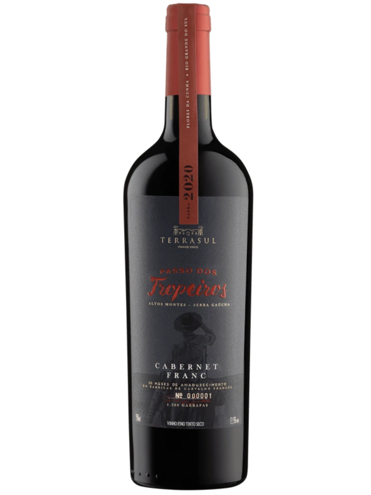 O Terrasul Passo dos Tropeiros Cabernet Franc é um vinho produzido pela Terrasul Vinhos Finos. Uma vinícola boutique da região dos Altos Montes-RS. Sua produção é de lotes exclusivos e limitados, o que confere aos seus vinhos extrema qualidade e autenticidade. É um vinho reserva, de extrema qualidade elaborado com 100% de uvas Cabernet Franc