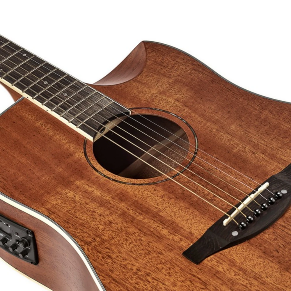 - Corpo em madeira natural com acabamento acetinado para melhor ressonância acústica