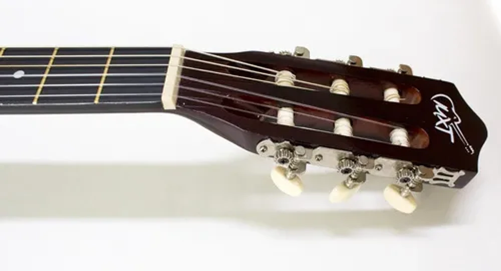 Construção com cordas de nylon, ideal para dedilhado suave e progressão confortável para iniciantes.