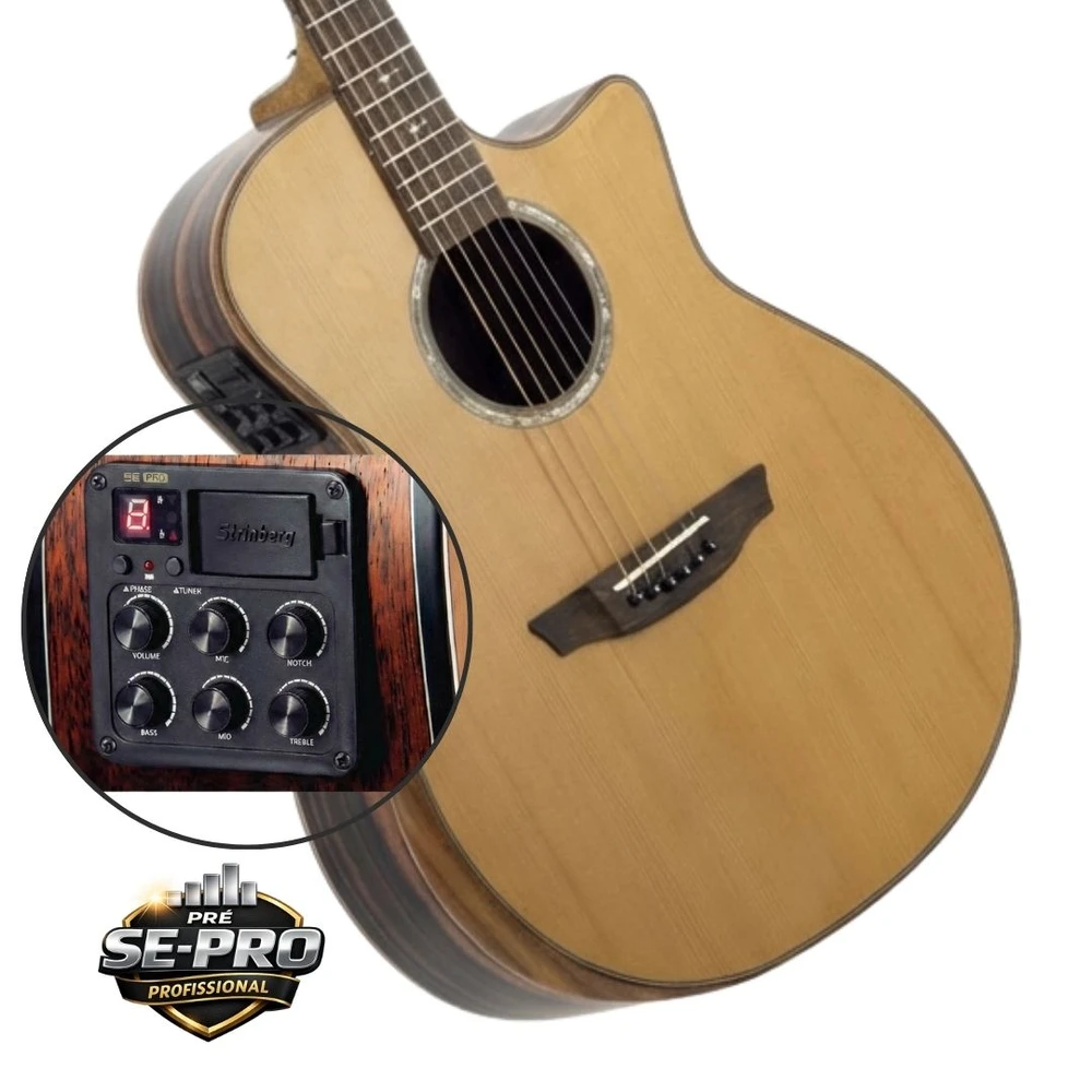 O pré-amplificador SE-PRO foi desenvolvido para oferecer controle total em apresentações ao vivo, facilitando ajustes rápidos e precisos no palco. A equalização de grave, médio e agudo permite moldar o timbre conforme o ambiente, enquanto o controle de microfone amplia as possibilidades de captação. O Notch Filter ajuda a eliminar microfonias indesejadas, garantindo som limpo mesmo em igrejas e espaços reverberantes. O afinador embutido traz praticidade durante a execução, o recurso Phase auxilia no controle de graves e cancelamentos, e o indicador de bateria evita surpresas durante a apresentação. Um conjunto completo para quem busca desempenho profissional e tranquilidade ao tocar amplificado.