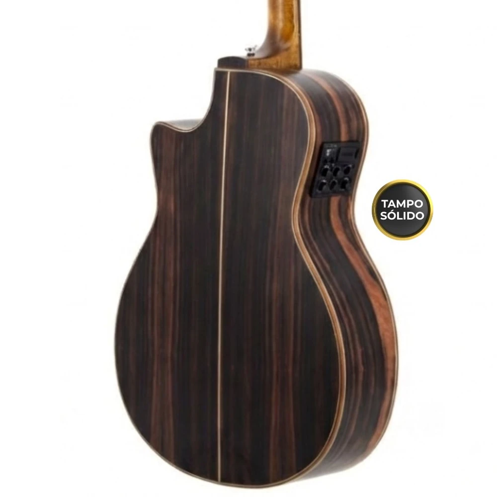 Um instrumento de alto nível para quem quer visual premium, timbre definido e recursos completos para tocar ao vivo. O tampo Roasted Solid Spruce entrega resposta mais rápida, dinâmica e presença sonora, enquanto o corpo em Macassar Ebony adiciona um toque sofisticado e uma projeção marcante. O pré SE-PRO, exclusivo da linha Diamond Series, oferece equalização avançada, afinador embutido e controles essenciais para palco, facilitando ajustes rápidos em qualquer ambiente. E para completar, acompanha Case Deluxe, trazendo proteção e praticidade no transporte.
