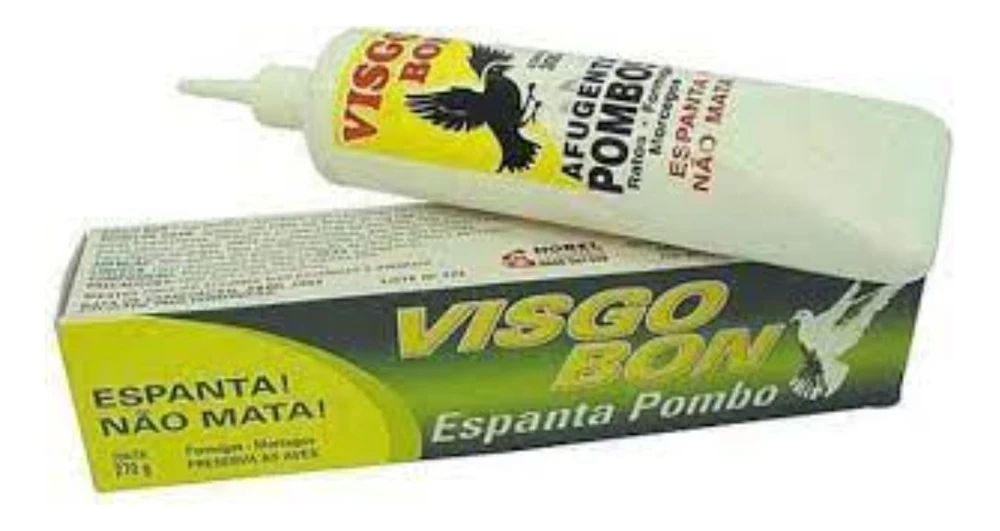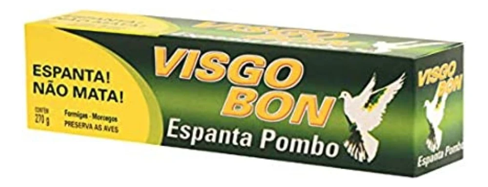 Visgobon espanta pombos gel 270 grProduto repelente, para espantar pombos e formigas.Diferenciais: trata-se de um repelente que apenas espanta os animais, não causa qualquer tipo de ferimento.Modo de usar: aplique um filete em forma de zigue-zague a 2 cm do beiral ou nas áreas frequentadas. Quando o animal tocar no produto, terá dificuldade em se liberar. Ao sair, alerta os companheiros, que ficam afastados para sempre. Para espantar formigas, faça o filete em volta do caule das plantas.