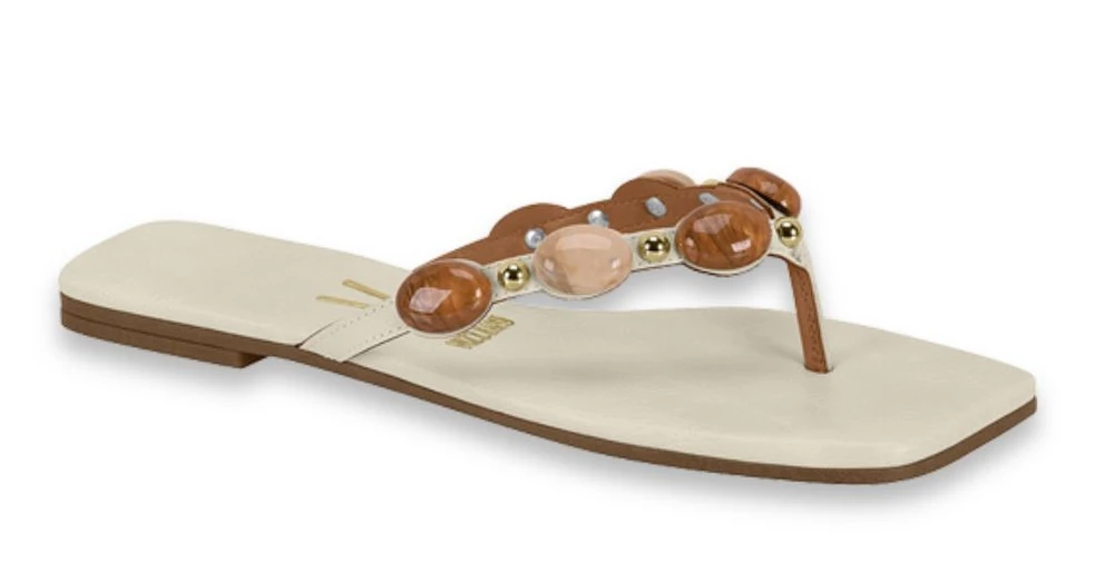 VIZZANO 6553.104 RASTEIRA - Off White - Napa SintéticoDesfrute do conforto e da elegância com a Rasteira Vizzano, perfeita para complementar seus looks com estilo.A Rasteira Feminina Vizzano 6553.104 é a escolha ideal para mulheres que buscam um calçado que alie conforto e sofisticação no dia a dia. Confeccionada em Napa sintético de alta qualidade, esta rasteira proporciona um toque suave e é perfeita para ambientes casuais. Seu design moderno conta com uma tira de dedo aberta que facilita o calce e valoriza a simplicidade, enquanto as pedrarias orgânicas e o metal dourado adicionam um toque de requinte e modernidade aos seus visuais. A palmilha macia garante excelente conforto ao caminhar, e o bico quadrado oferece um visual contemporâneo, adaptando-se do casual ao mais elaborado. O solado rasteiro emborrachado, com frisos antiderrapantes, assegura maior segurança em diversos tipos de solo.Diferenciais:Design sofisticado com pedrarias orgânicas e detalhes dourados que elevam o estilo.Palmilha macia que proporciona conforto superior para uso prolongado.Solado emborrachado com frisos antiderrapantes, garantindo segurança e estabilidade ao caminhar.Bico quadrado que confere um toque contemporâneo e versátil para diversas ocasiões.Mais sobre o Produto:O cabedal em Napa sintético oferece um toque suave e uma experiência agradável ao calçar.A tira de dedo em formato aberto proporciona praticidade e facilidade no calce.Com aproximadamente 1 cm de altura no solado, oferece um perfil baixo e elegante.Dicas de Uso:Para manter a beleza e a durabilidade da sua rasteira, limpe-a com um pano úmido e evite o uso de produtos químicos abrasivos.Ideal para compor looks casuais, passeios e eventos diurnos, garantindo conforto e estilo.Ficha Técnica:Marca: VIZZANOReferência: 6553.104Material: Napa sintéticoCor: Off WhiteBico: QuadradoSolado: Borracha antiderrapanteDetalhes: Pedrarias orgânicas e metal douradoAltura do Solado: Aproximadamente 1 cmGarantia: 30 dias após o recebimento do produto