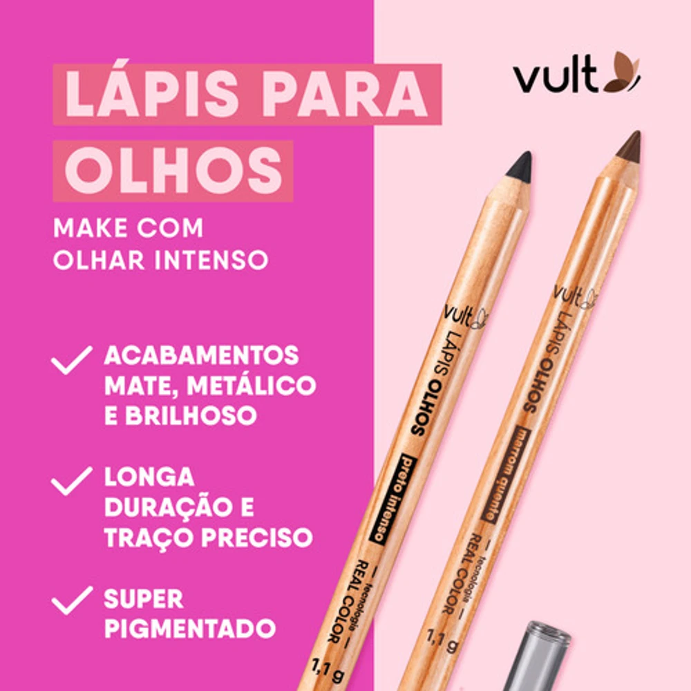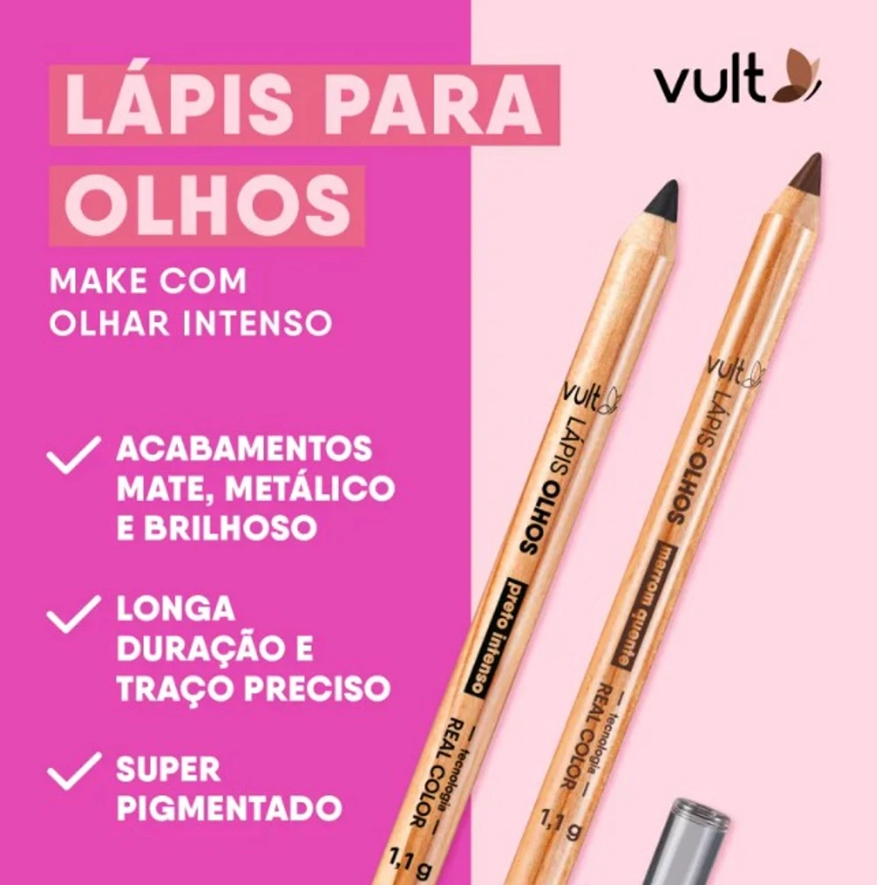 Lápis de Olhos Vult Make 1,1g Preto Intenso – Definição e Durabilidade para um Olhar Marcante Alcance um olhar poderoso com o Lápis de Olhos Vult Preto Intenso, especialmente desenvolvido para quem busca precisão e longa duração. Com pigmentação super intensa, garante traços nítidos e marcantes desde a primeira aplicação, realçando sua expressão com naturalidade e sofisticação. Benefícios: - Alta pigmentação para um preto profundo e impactante - Traço preciso que facilita a aplicação, ideal para delinear ou esfumar - Longa duração que mantém seu olhar perfeito durante horas - Acabamentos variados: mate, metálico e brilhante para diferentes estilos e ocasiões Este lápis é perfeito para quem deseja praticidade sem abrir mão da qualidade. A textura macia facilita a aplicação sem irritar a pele, proporcionando conforto e versatilidade para looks do dia a dia ou eventos especiais. Aposte no Vult para um olhar intenso, marcante e que não desaparece com o passar do tempo. Palavras-chave: lápis de olhos preto, lápis preto intenso, lápis para olhos longa duração, maquiagem para olhos.