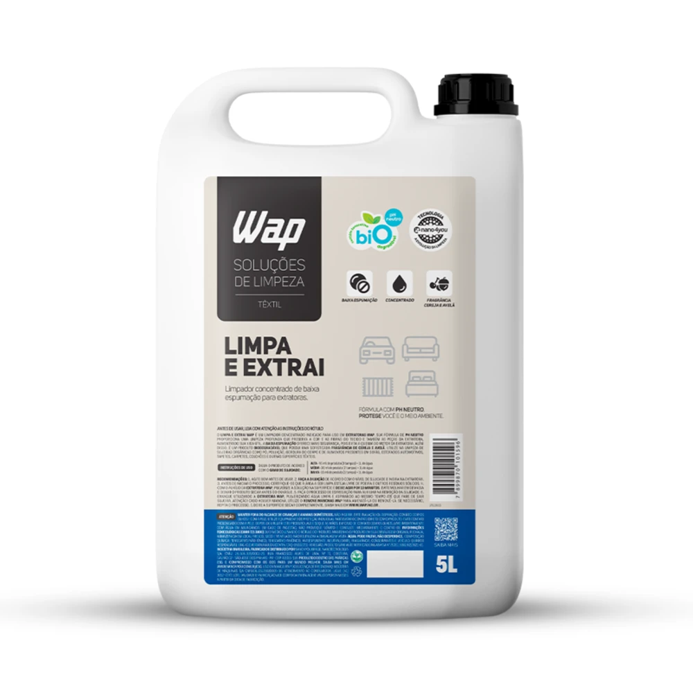 Quando o desafio é grande, você precisa de uma solução à altura. O Limpa e Extrai WAP 5L foi desenvolvido para oferecer desempenho superior na limpeza profissional e intensiva de estofados, carpetes, colchões e superfícies têxteis em geral. Sua fórmula concentrada de baixa espumação foi pensada para uso com extratoras de sujeira, garantindo alto rendimento, economia de tempo e proteção dos equipamentos.