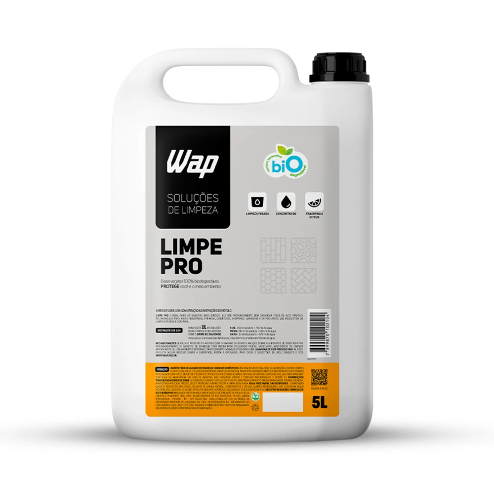 Quando a limpeza precisa ser eficiente, constante e em grande escala, o Limpe Pro WAP 5L entrega tudo o que você espera de um limpador profissional: alto desempenho, economia por litro e segurança para todos os tipos de piso. Sua fórmula concentrada de base vegetal é 100% biodegradável e ideal para áreas de médio e alto tráfego, como garagens, pátios, centros logísticos, indústrias, shoppings e comércios.