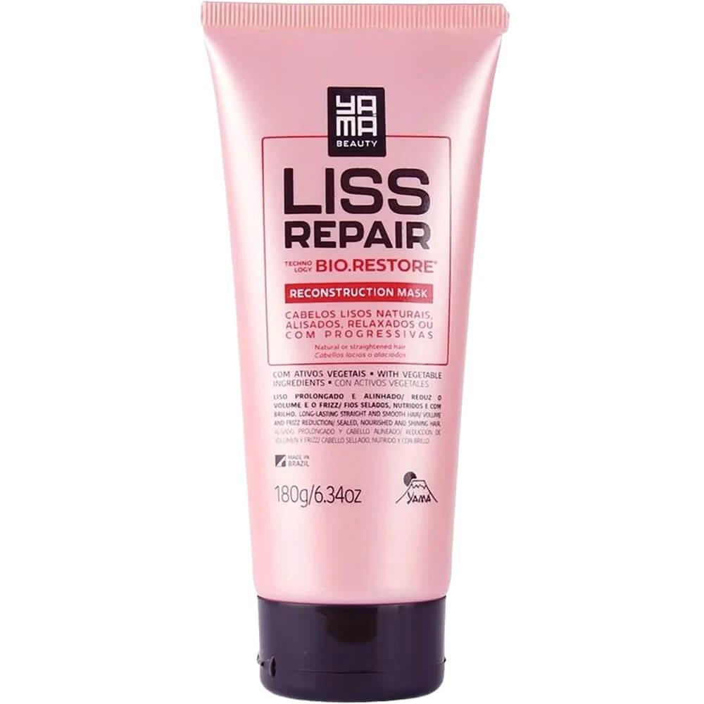 A máscara YAMÁ LISS REPAIR promove nutrição e hidratação intensa e sua tecnologia Bio.Restore® possui um exclusivo complexo de ativos que reforça a estrutura interna dos fios, reparando os danos causados por processos químicos.